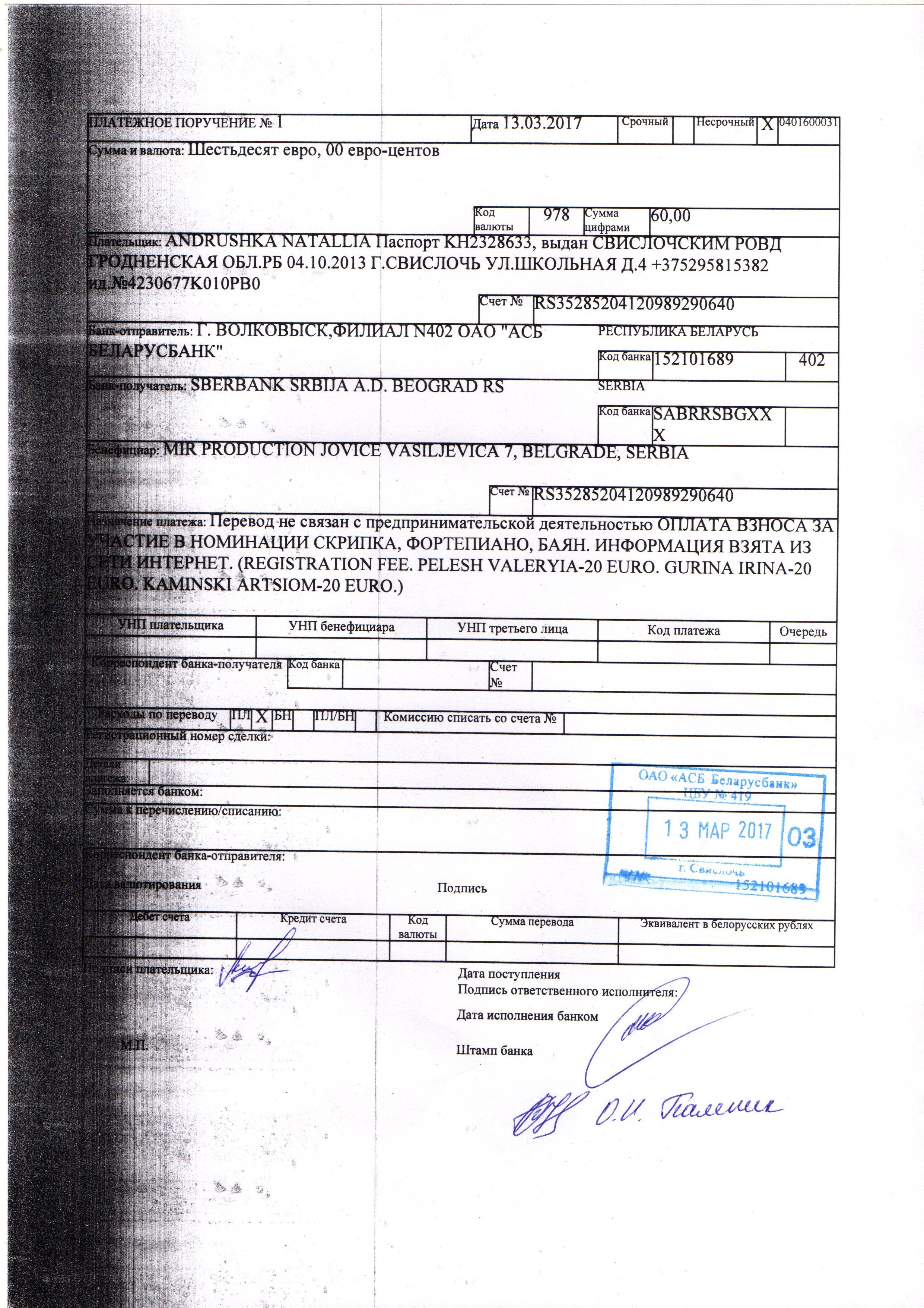 ЗАЯВКА
