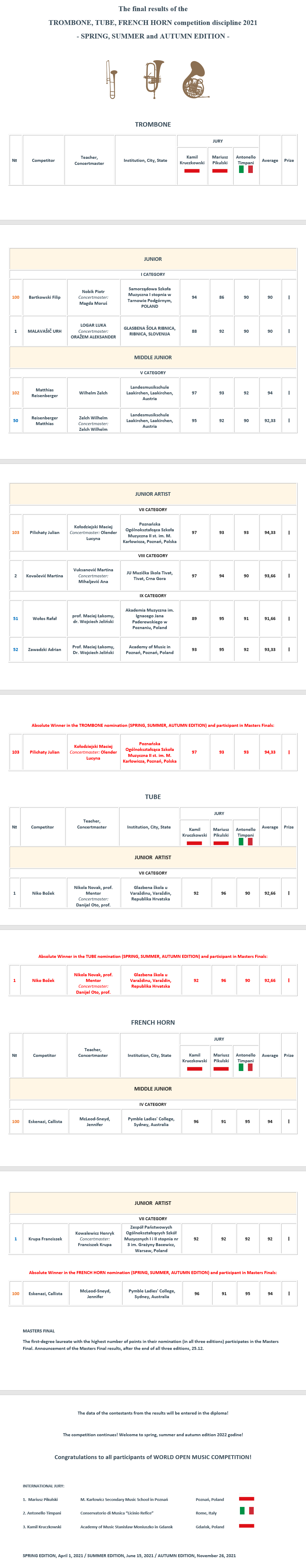 DOWNLOAD FINAL RESULTS FOR TROMBONE, TUBE, FRENCH HORN IN PDF FORMAT 2021